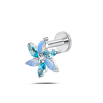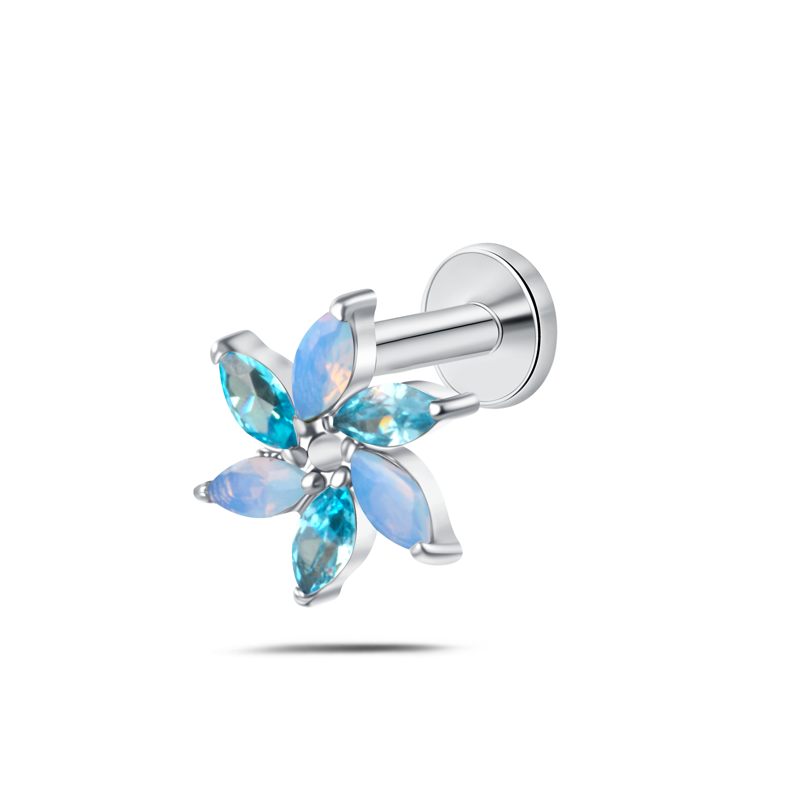 Piercing orecchio/naso/bocca stella alpina azzurro multicolor in argento