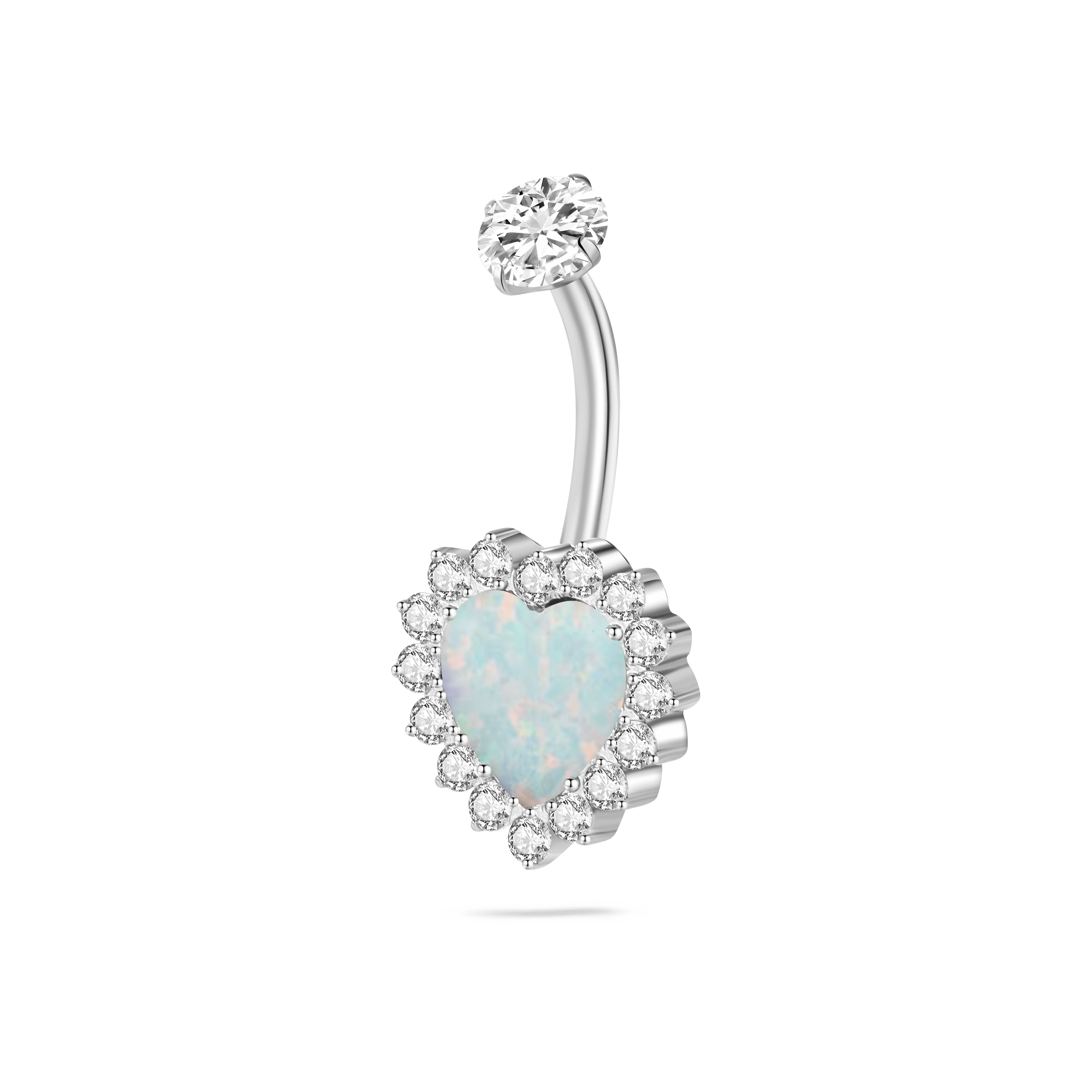 Piercing ombelico cuore bianco opale in argento con cristalli bianchi
