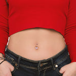 Silver heart navel piercing with pink crystals