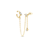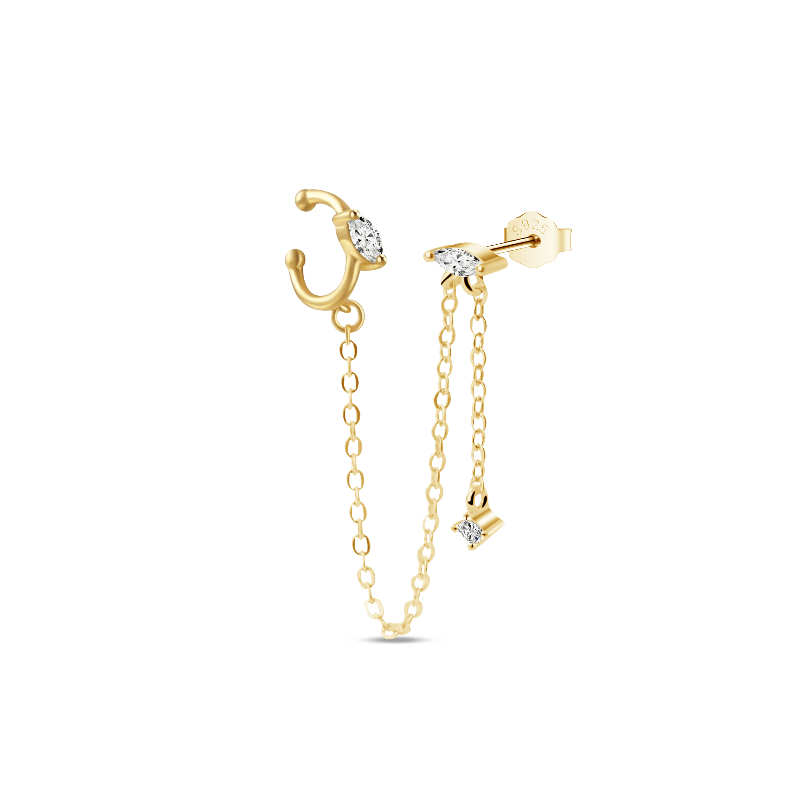 Stud earring with gold ear cuff