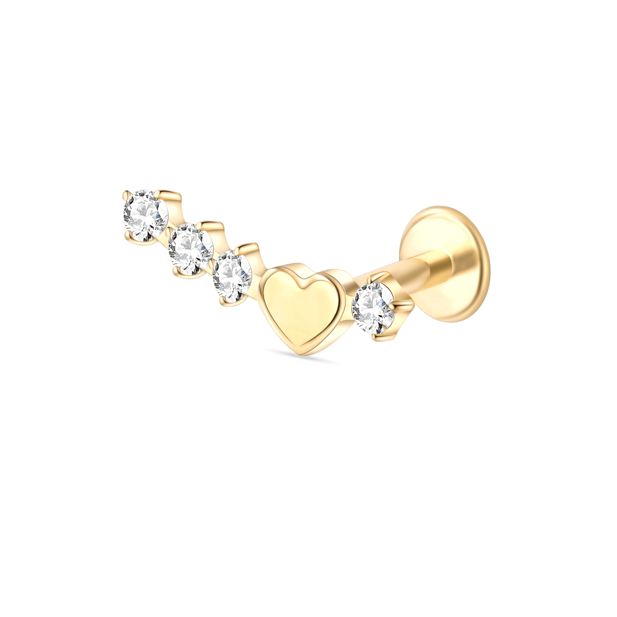 Heart ear piercing with white crystals in gold