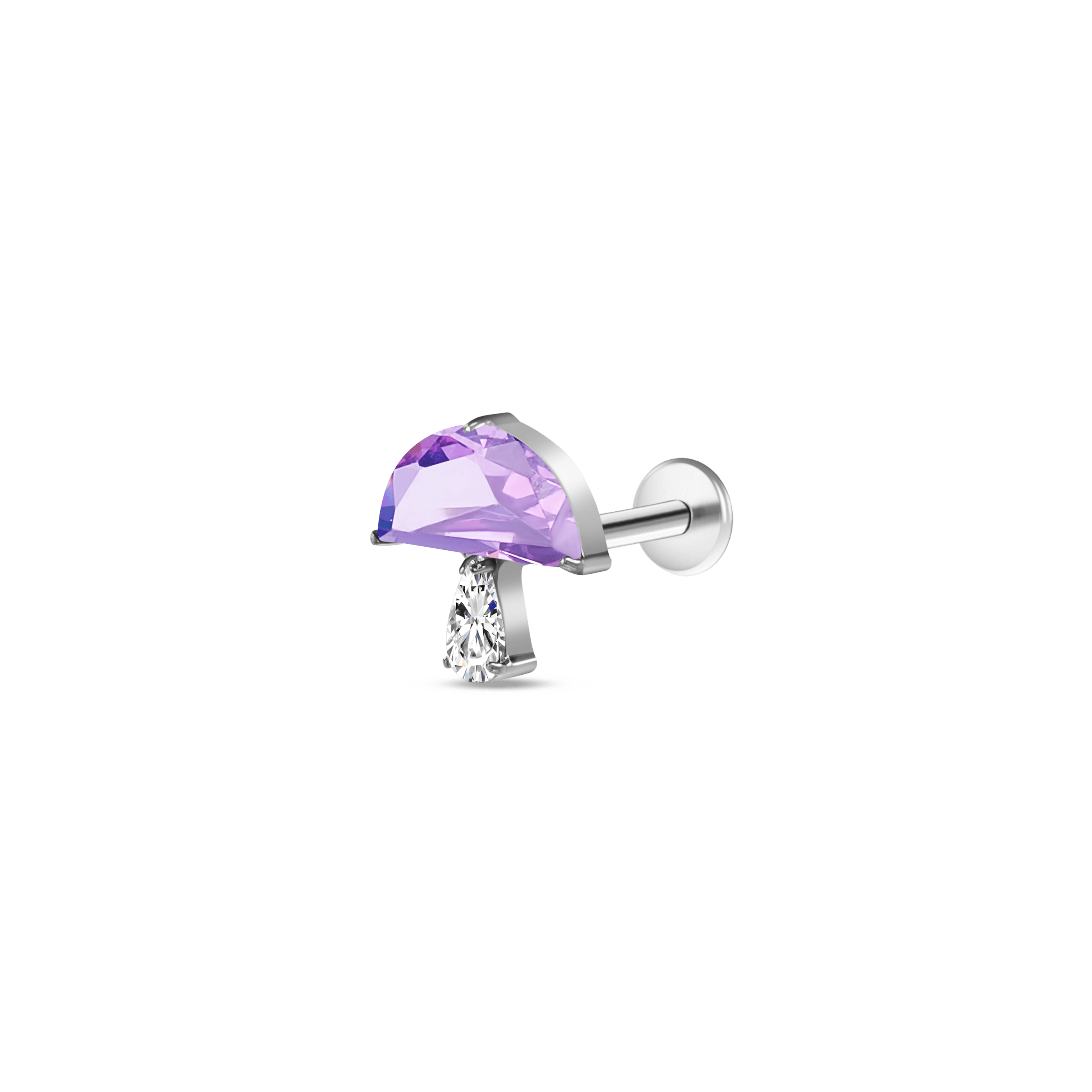 Purple mushroom ear piercing in silver