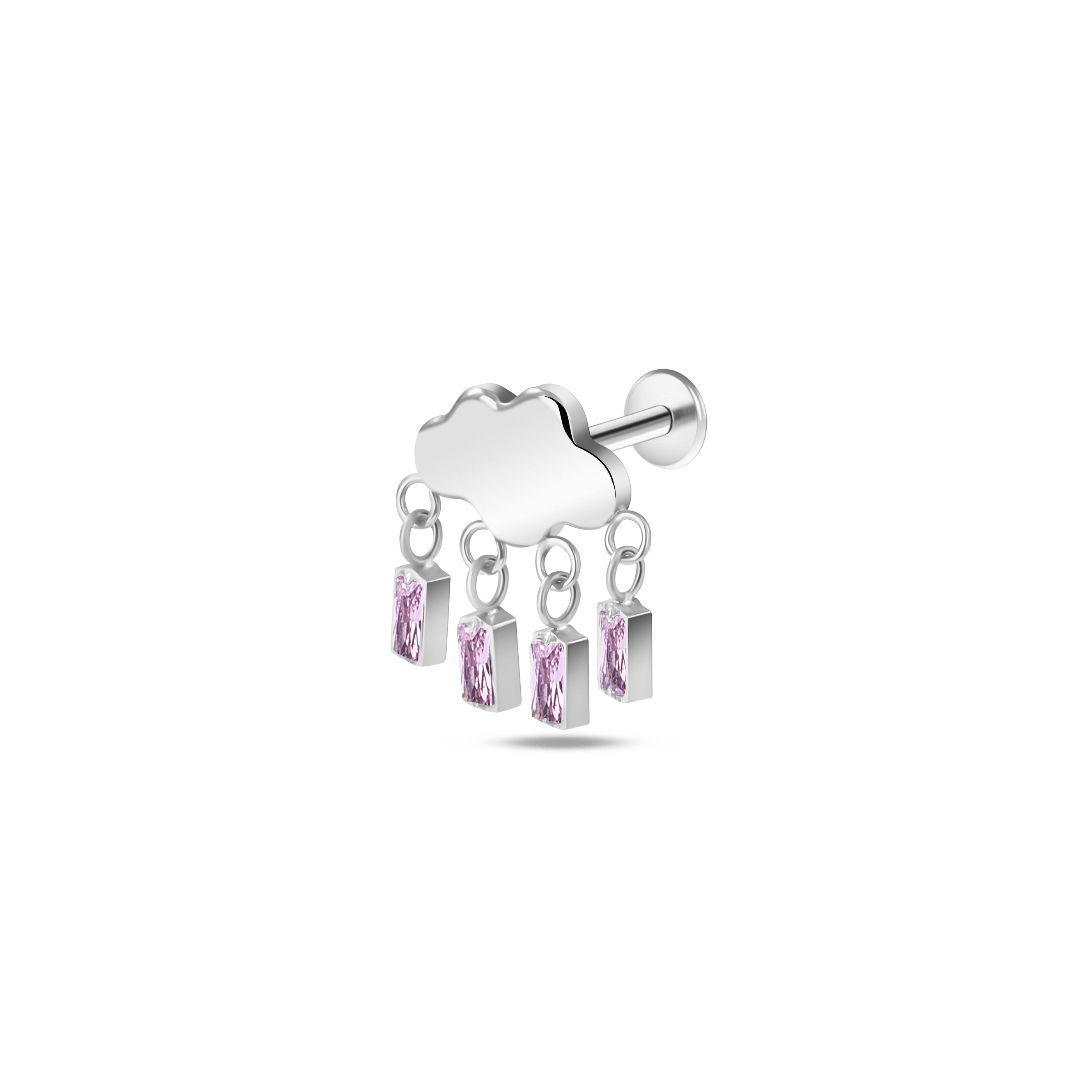 Pink cloud ear piercing in silver