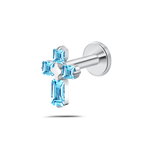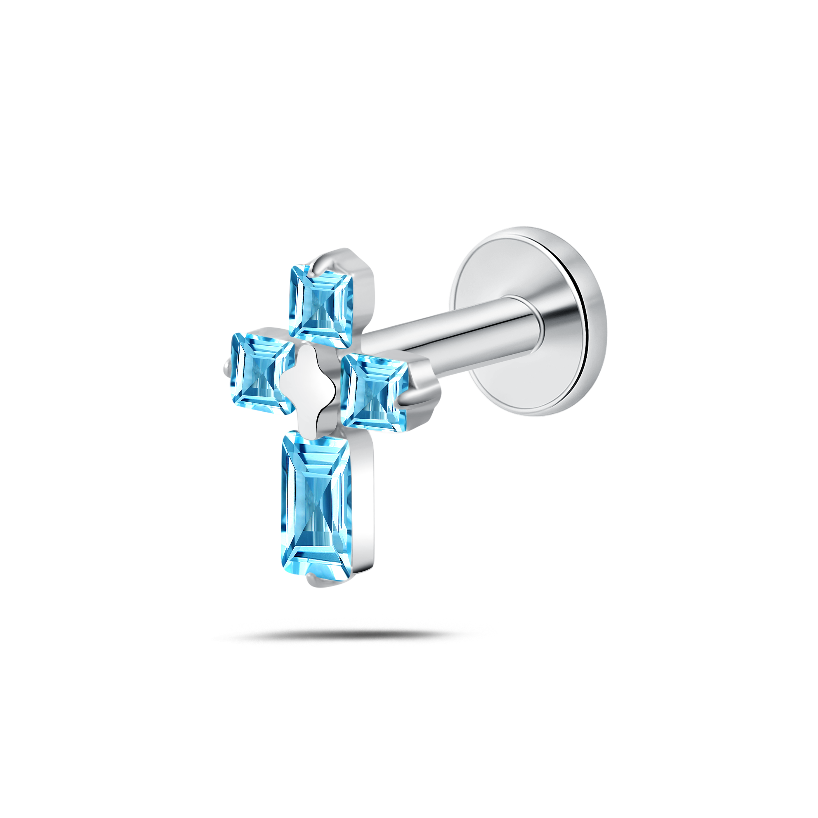 Piercing orecchio/naso/bocca croce gotica azzurra in argento