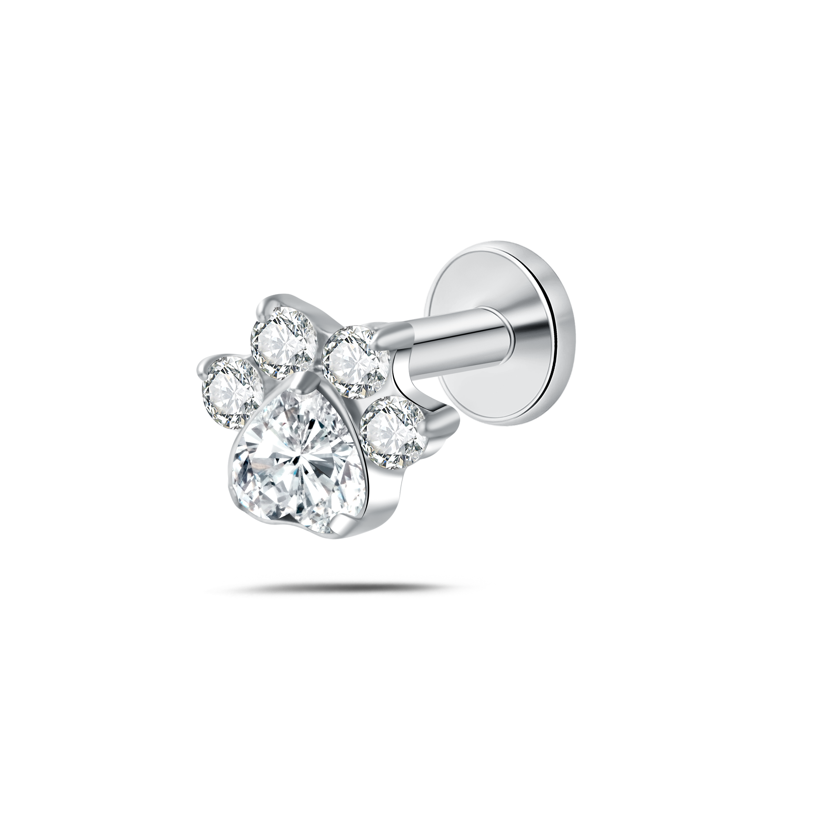 Piercing orecchio/naso/bocca zampa brillante bianca in argento