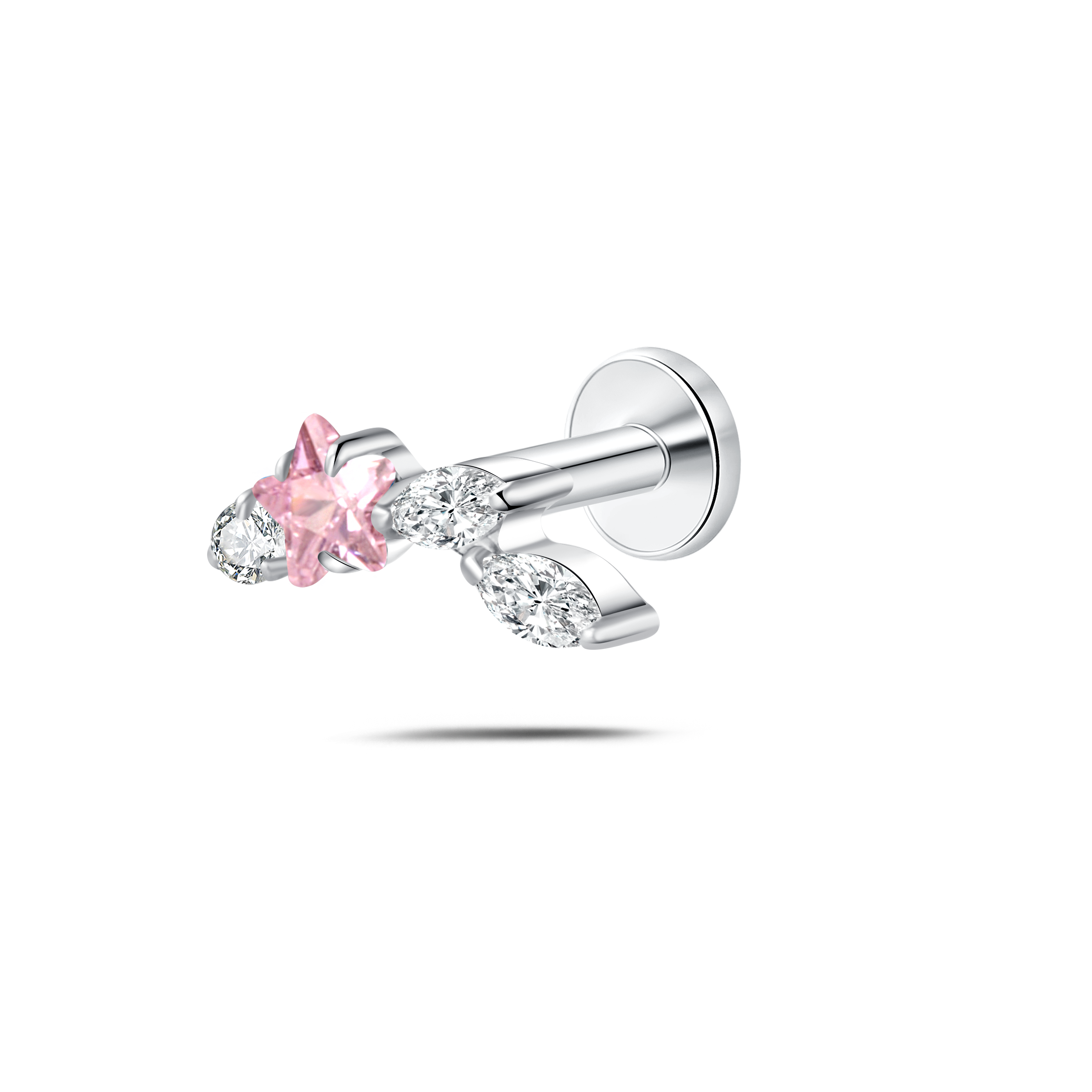 Piercing orecchio/naso ramo stellato rosa e bianco in argento