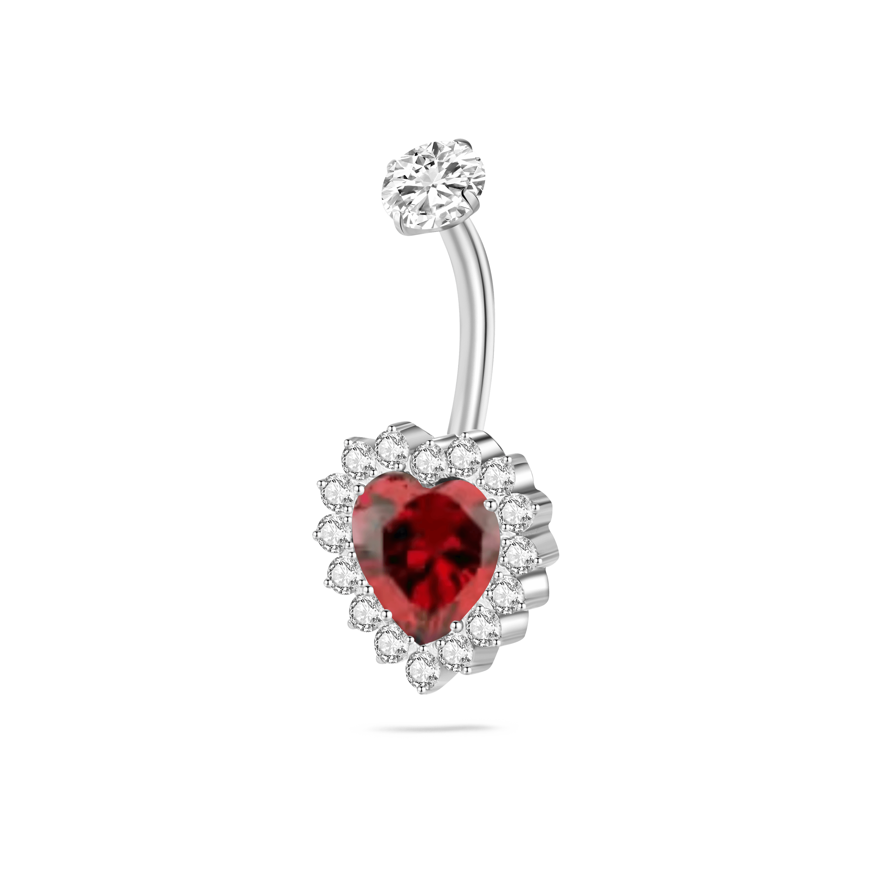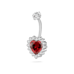 Piercing ombelico cuore rosso in argento con cristalli bianchi