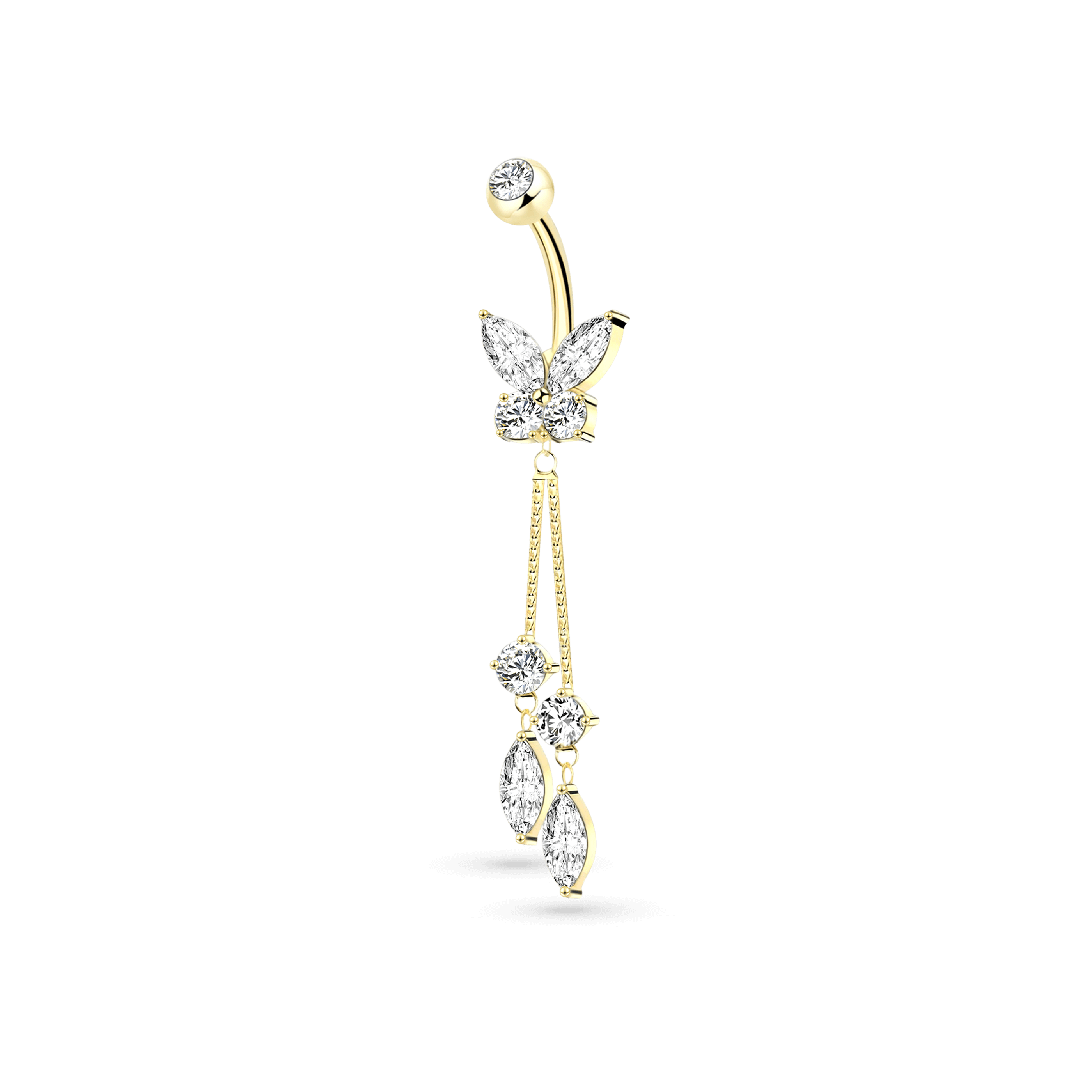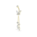 Butterfly navel piercing with gold pendants