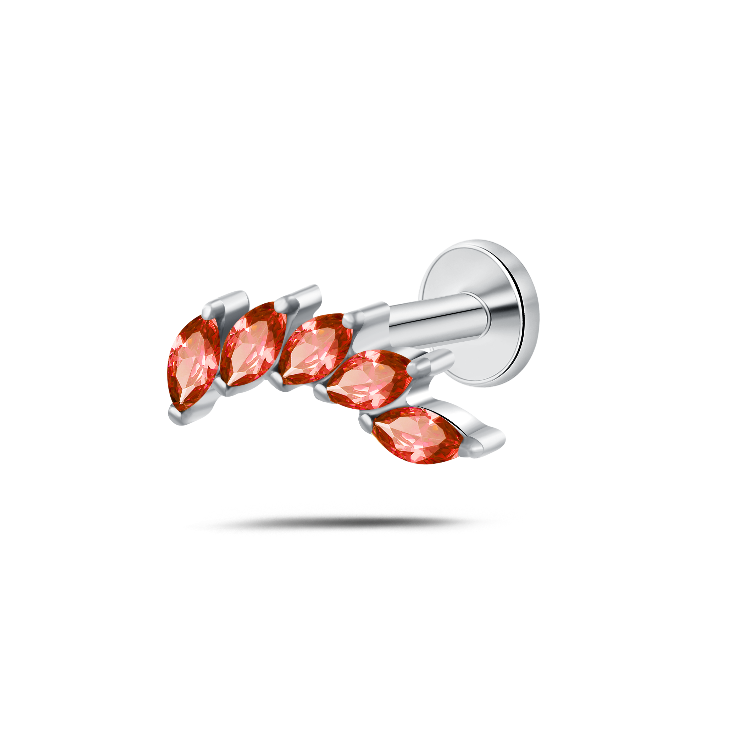 Piercing orecchio/naso foglia di cristallo rossa in argento