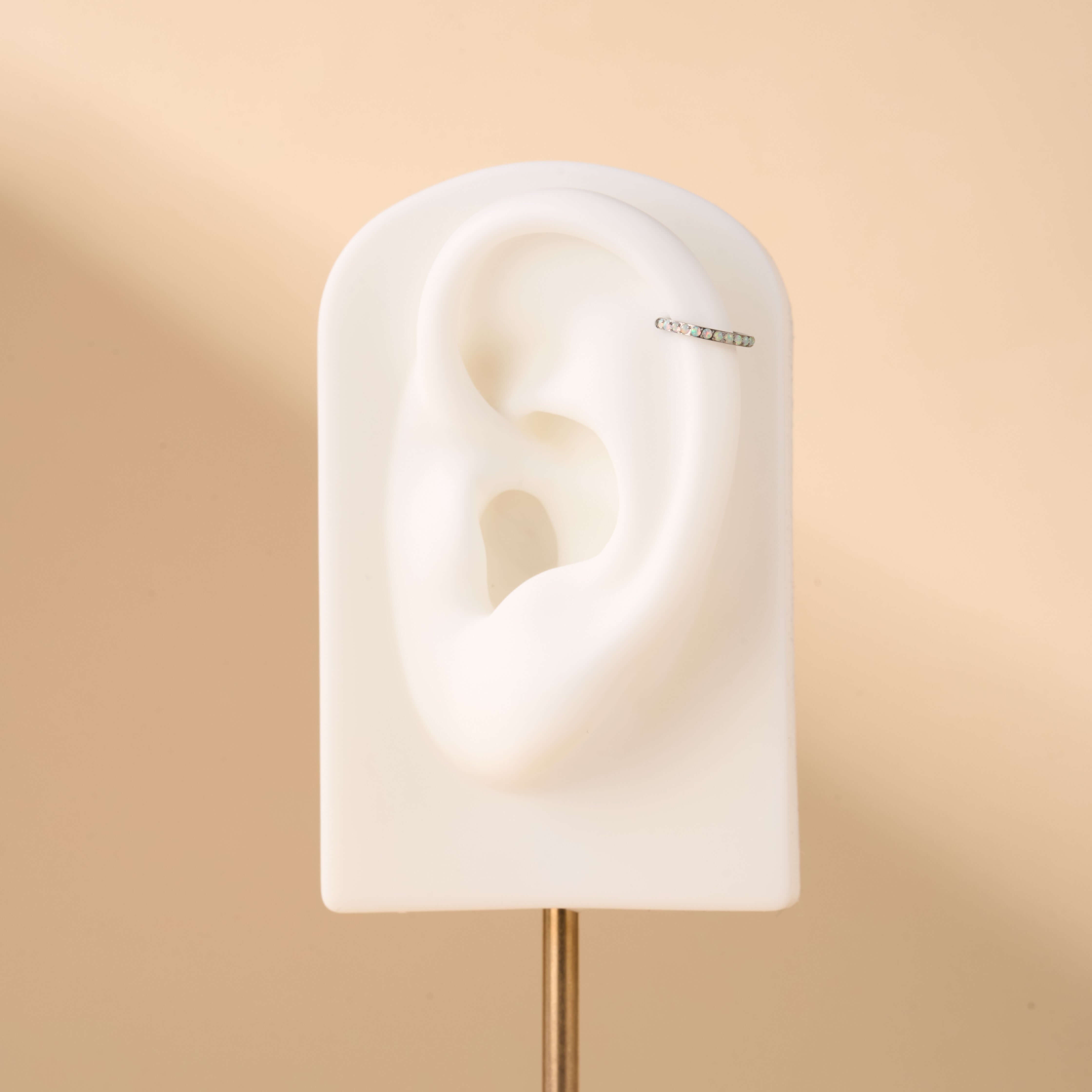 Piercing orecchio/naso/bocca cerchietto opale bianco in argento