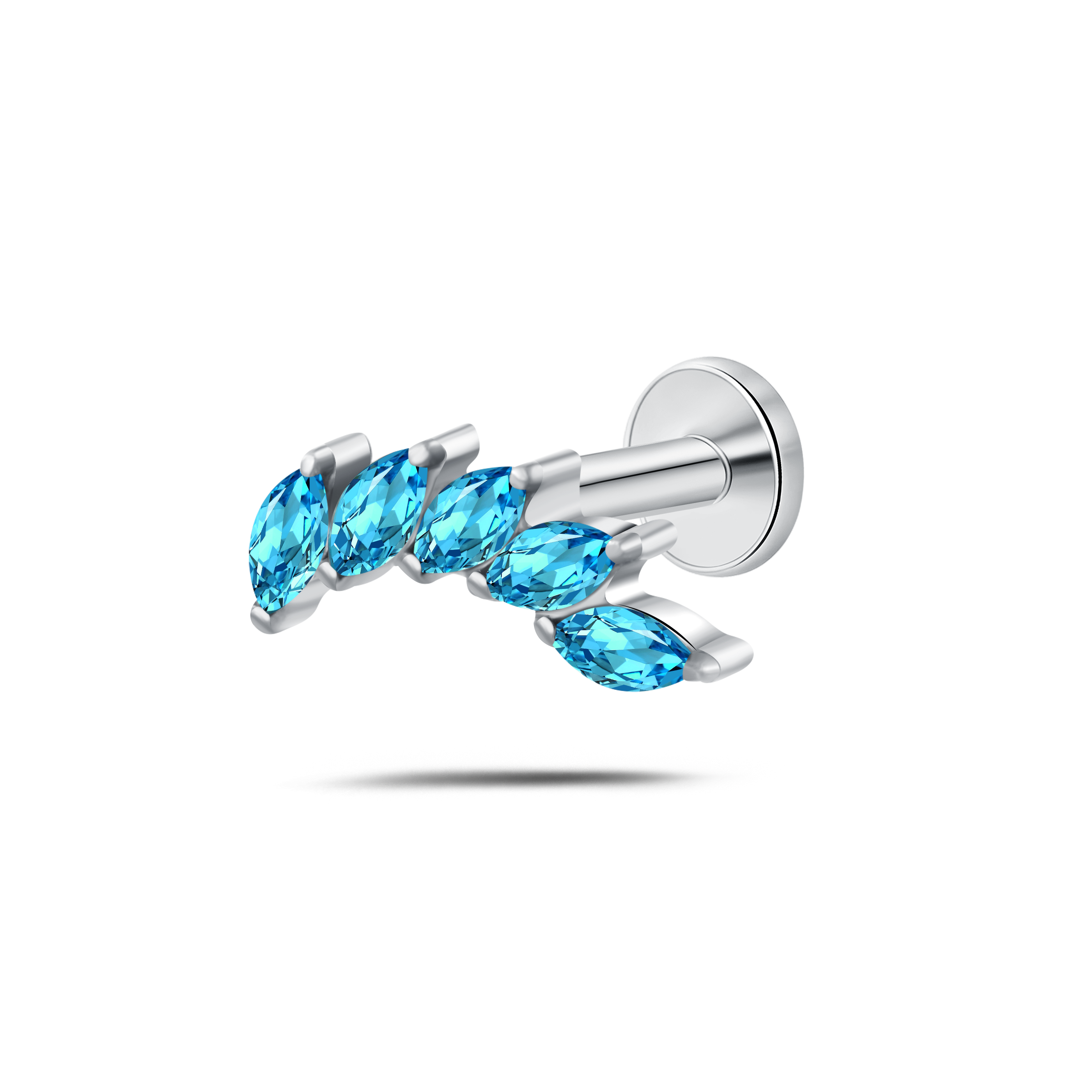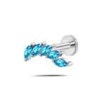 Piercing orecchio/naso foglia di cristallo azzurro in argento