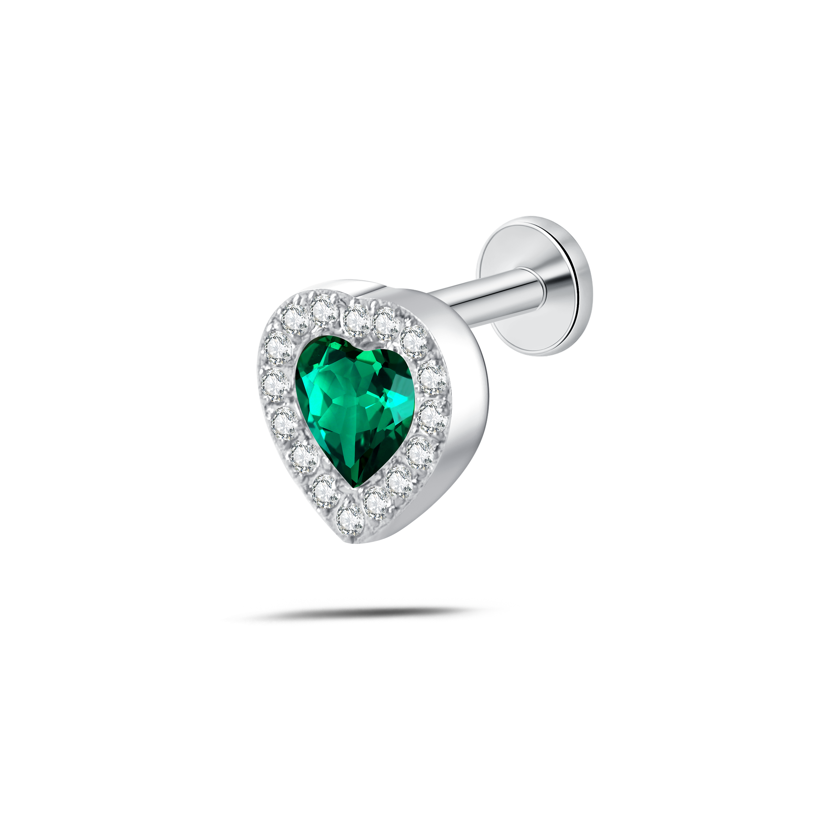 Piercing orecchio/naso cuore innamorato verde in argento