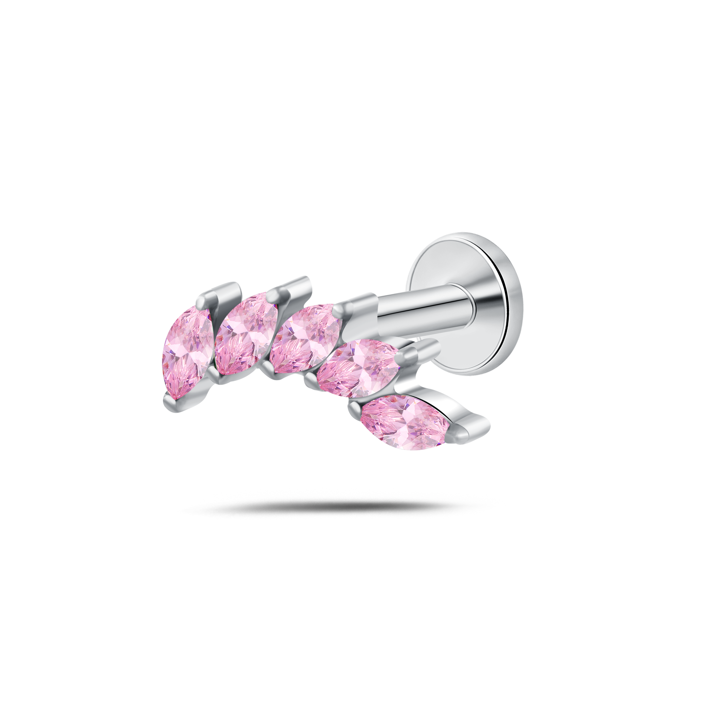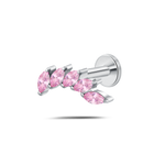 Piercing orecchio/naso foglia di cristallo rosa in argento